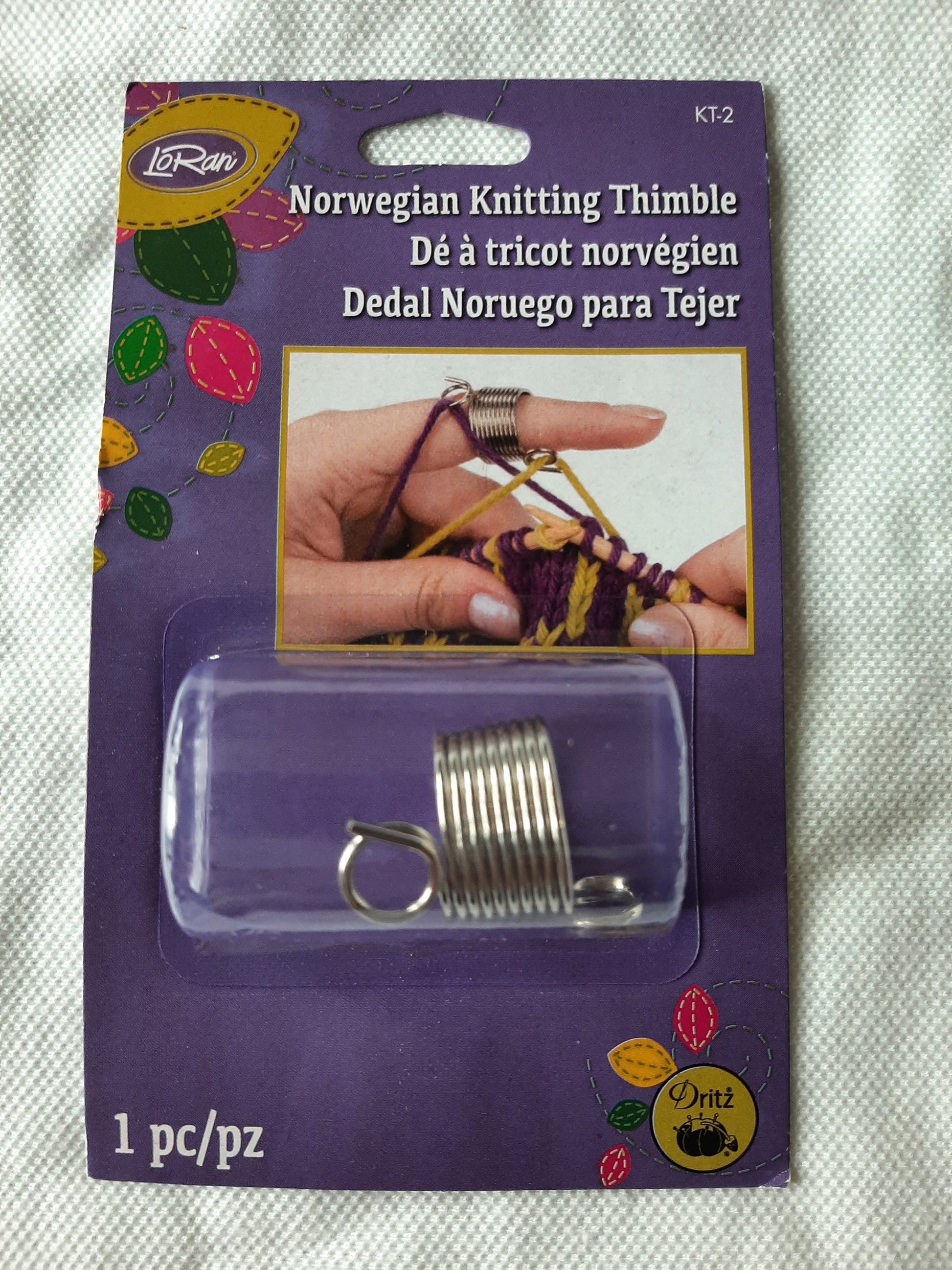 This flexible wire coil has 2 yarn guides to help control and tension your yarn in stranded knitting.